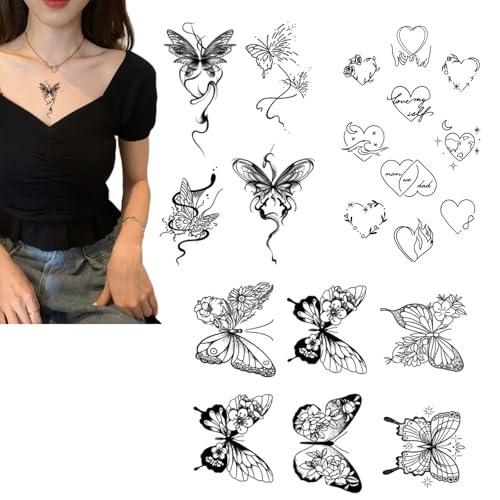 ワンポイント タトゥー シールセット 3枚入り 2週間で消える 韓国 防水 除去も便利 蝶 花 心