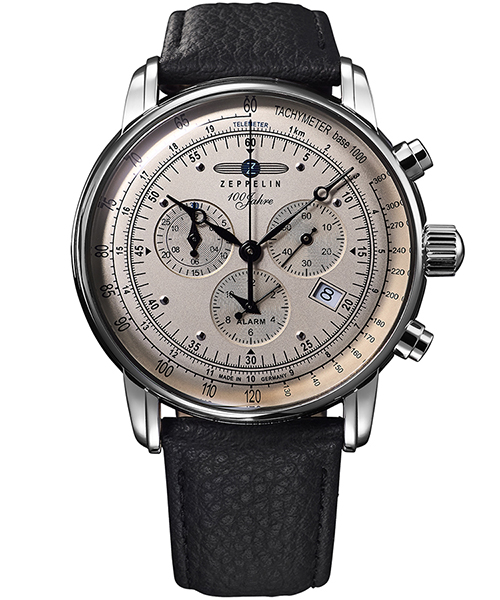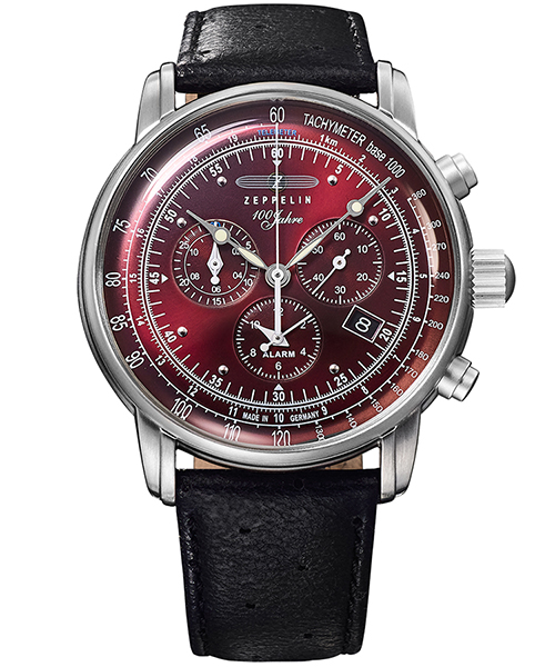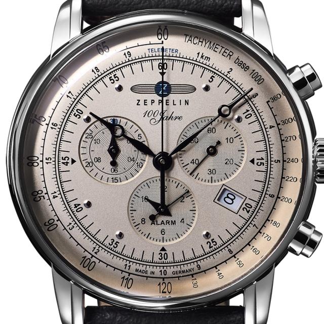 ベースモデルは、ツェッペリンで大人気となっている100周年記念シリーズのクロノグラフアラームです。湾曲したボンベダイヤルやドームガラス、飛行船型のケースが織りなす立体感は唯一無二のデザインです。