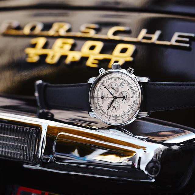 ツェッペリン 100周年記念シリーズ クロノグラフアラーム 限定モデル ヴィンテージポルシェレザー 7680-1-BK-NA メンズ 腕時計 クオーツ シボ