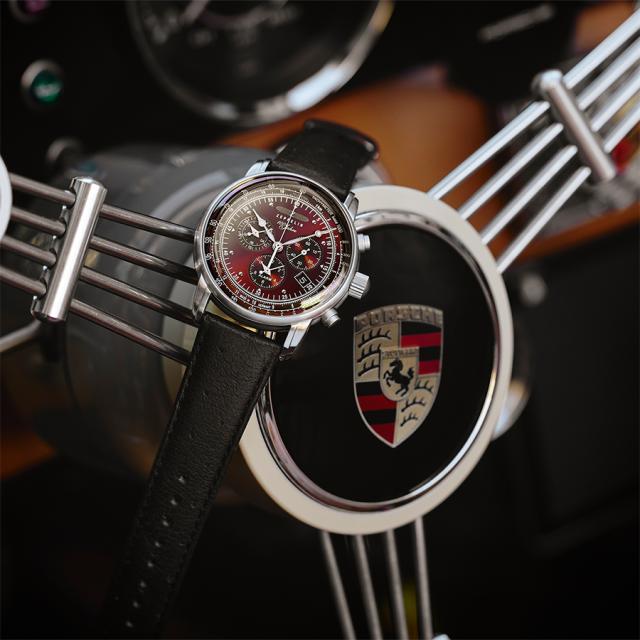 ツェッペリン 100周年記念 クロノグラフアラーム 限定モデル ヴィンテージポルシェレザー 8680-5-BK-NA メンズ 腕時計 クオーツ パンチング