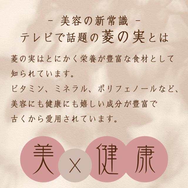 テレビで話題の菱の実を続けやすいサプリメントで! 内側から溢れるみずみずしい輝きへ。 古くから健康食材として親しまれてきた菱の実。 その菱の実がテレビで紹介され今注目を集めています。 菱の実には美容と健康をサポートするポリフェノールや、毎日のスッキリをサポートする食物繊維、活動的な毎日を支えるミネラルなどの成分が豊富に含まれると言われています。 美容と健康のトータルサポートにおすすめです。 ▼こんな方におすすめ ・若々しくありたい方 ・年齢が気になる方 ・キレイのサポートに ・食生活が不規則な方 | |