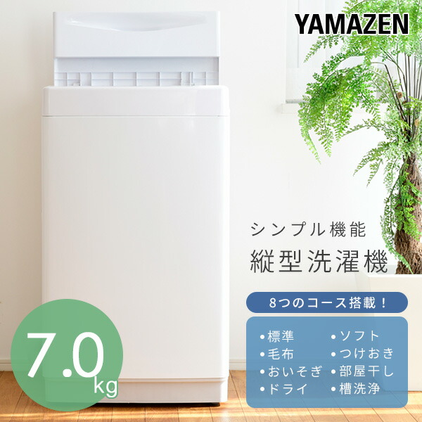 洗濯機 7kg 一人暮らし 小型 縦型洗濯機 脱水 8コース搭載 小型洗濯機 洗濯機 洗濯 脱水 すすぎ 引っ越し 単身 部屋干し 毛布 キレイ きれい 洗濯器 コンパクト 縦型洗濯機 シンプル 山善 YAMAZEN 【送料無料】