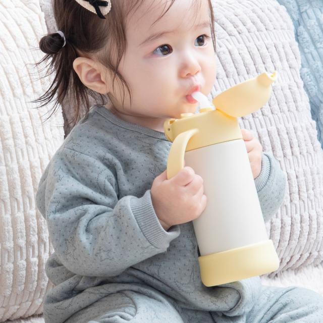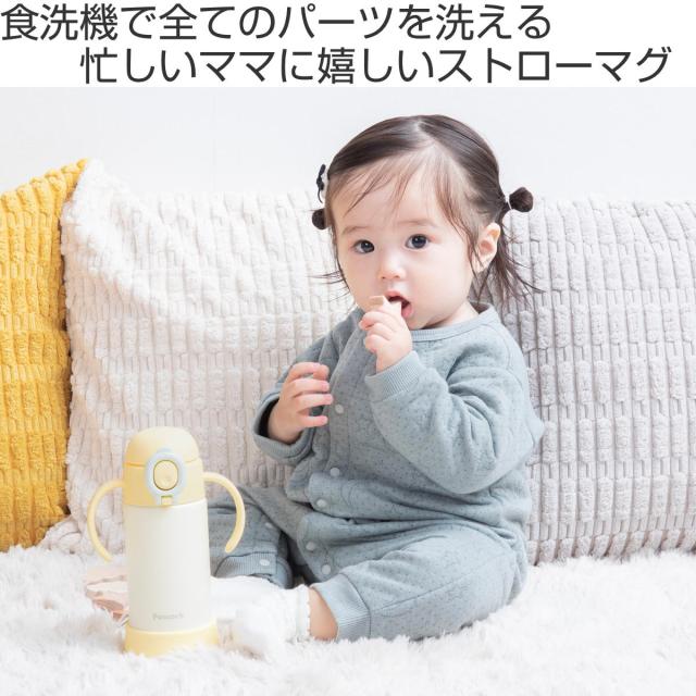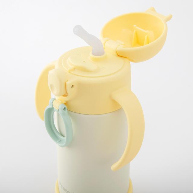 生後7か月頃からのお子様がストローで飲めるように練習できるストローマグです。小さなお子様が握りやすい両手ハンドル付きです。魔法びん構造なので、夏でも冷たさをキープしてくれます。同時に結露もしにくいので、カバンの中に入れても安心です。