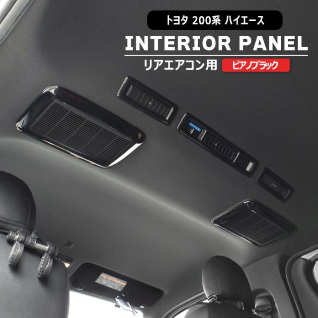 200系 ハイエース 4型〜8型 リア エアコン インテリアパネル ピアノブラック 5p 新品 貼り付け ダクト インパネ エアコン吹き出し口 内装 カスタムパーツ ドレスアップ トヨタ 4型 5型 6型 7型 8型 標準 ワイド
