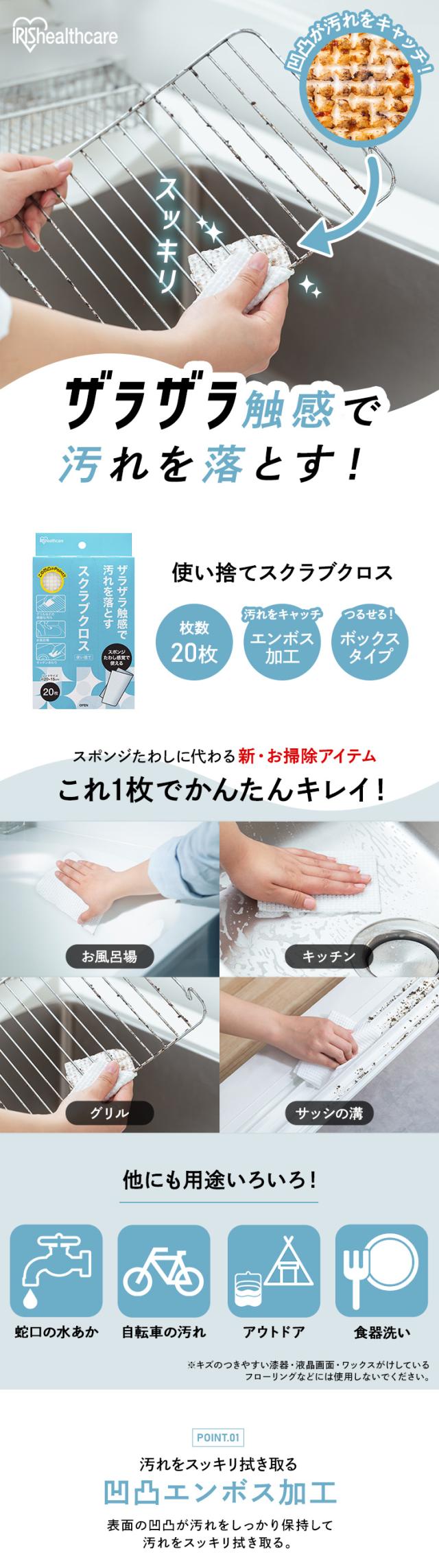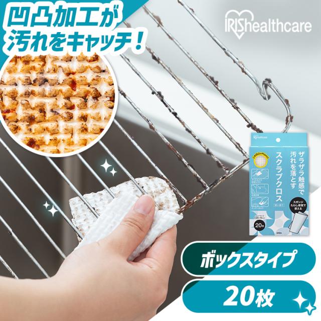 使い捨てスポンジ スクラブクロス 20枚 頑固な汚れ 掃除 コンロ グリル シンク キャンプ アウトドア バーベキュー 風呂 洗剤 使える シートたわし スクラブペーパー スクラブシート キッチンクロス ボックス アイリスオーヤマ SC-B20W *