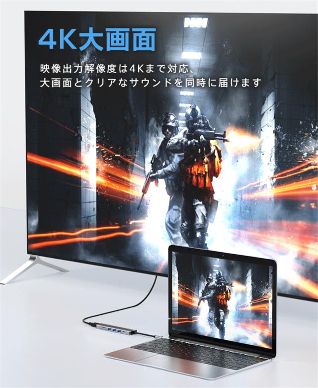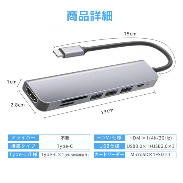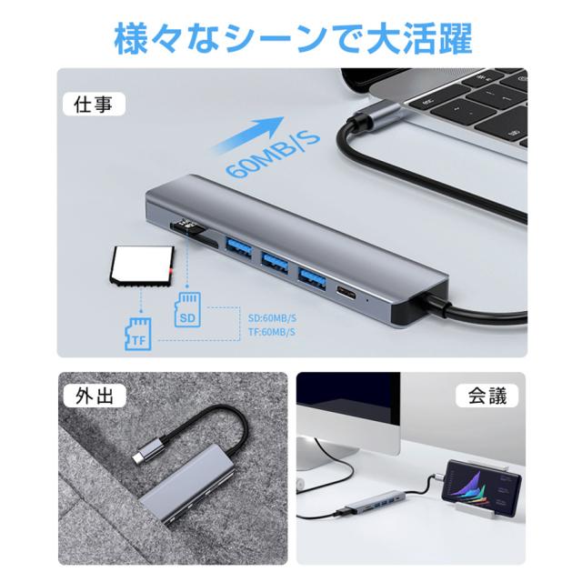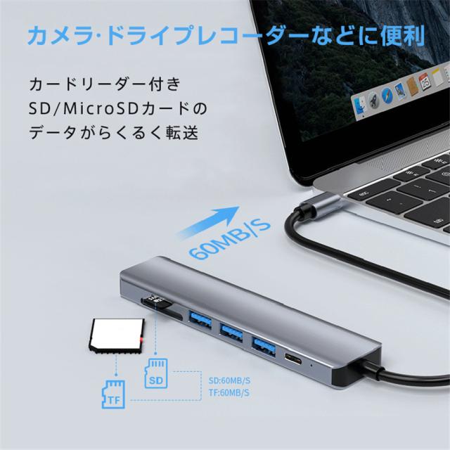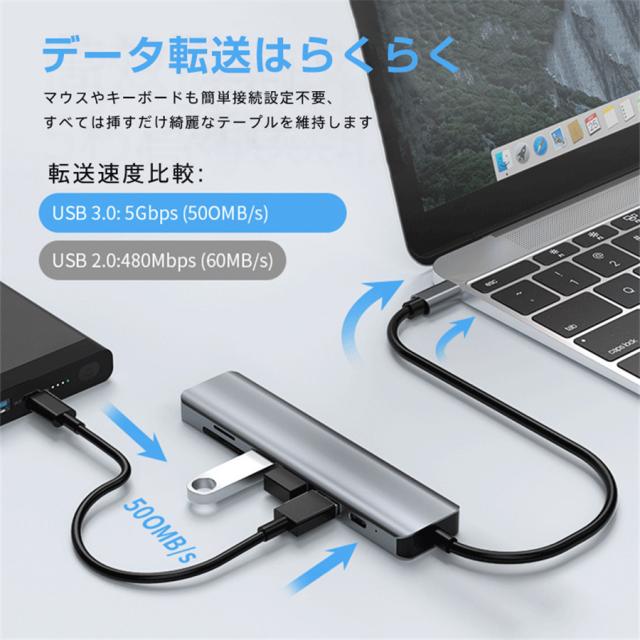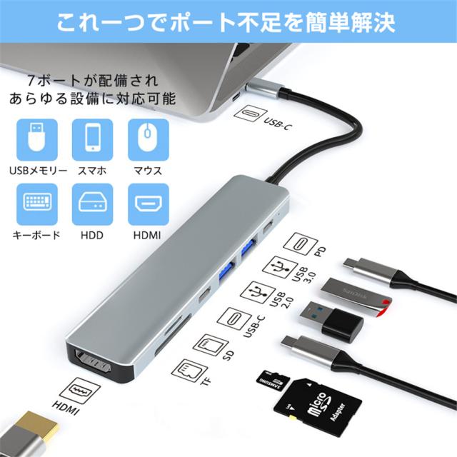 ドッキングステーション USBハブ 7ポート USB3.0 Type-C 変換アダプター PD充電 7in1 HDMI出力 SD/