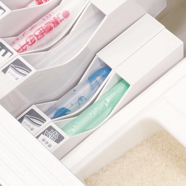 ●仕切り板を使用すれば、袋が少量になってもへたらずにサッと取り出せます。