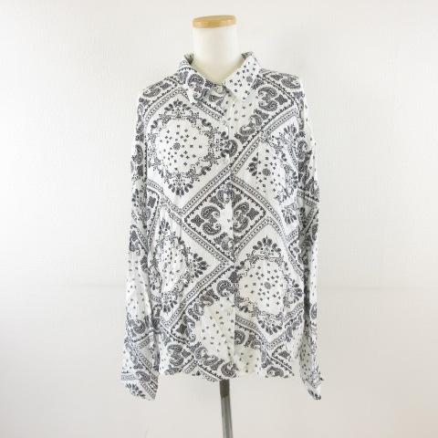 【中古】DAZY シャツ ブラウス 長袖 総柄 白 黒 M *T928 レディース