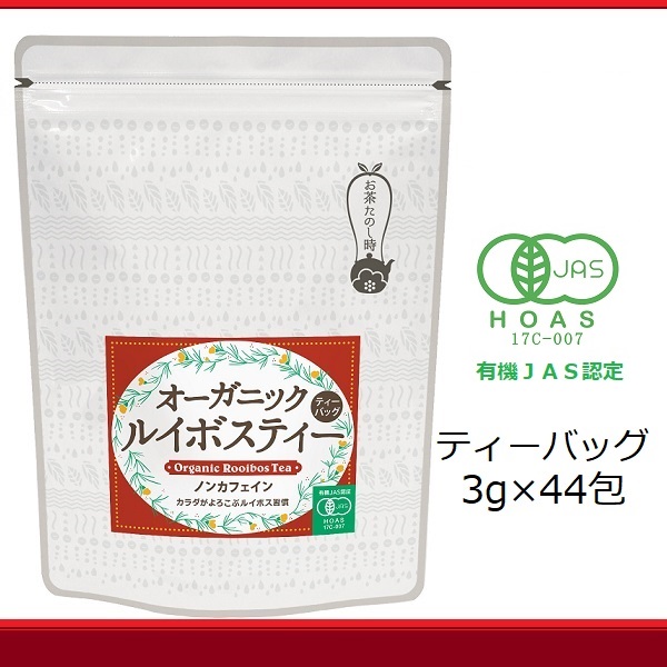 【新】有機JAS認証★オーガニックルイボスティー★ティーバッグたっぷり3g入×44包★納得の美味しさノンカフェインティー