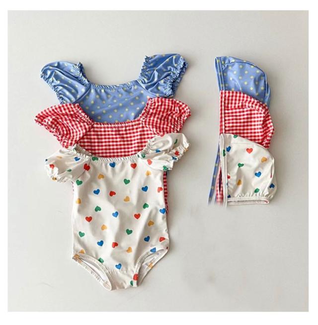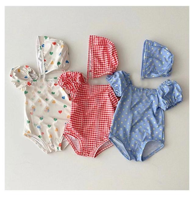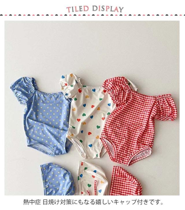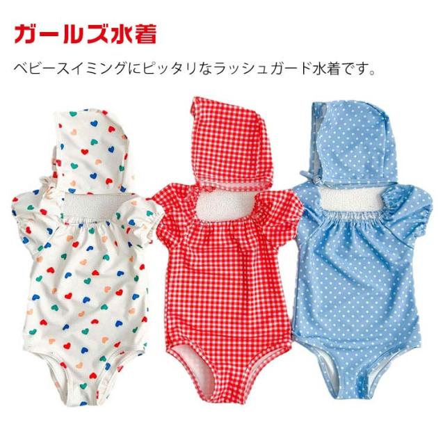 キャップ付き ガールズ水着 ベビー水着 赤ちゃんの水着 オールインワン ワンピース 女の子 男の子 ベビー 水着 キッズ 女の子 水着 女子 女児 子供 花柄 水玉柄 チェック柄 ハート柄 新生児 海 プール スイミング 保育園 幼稚園