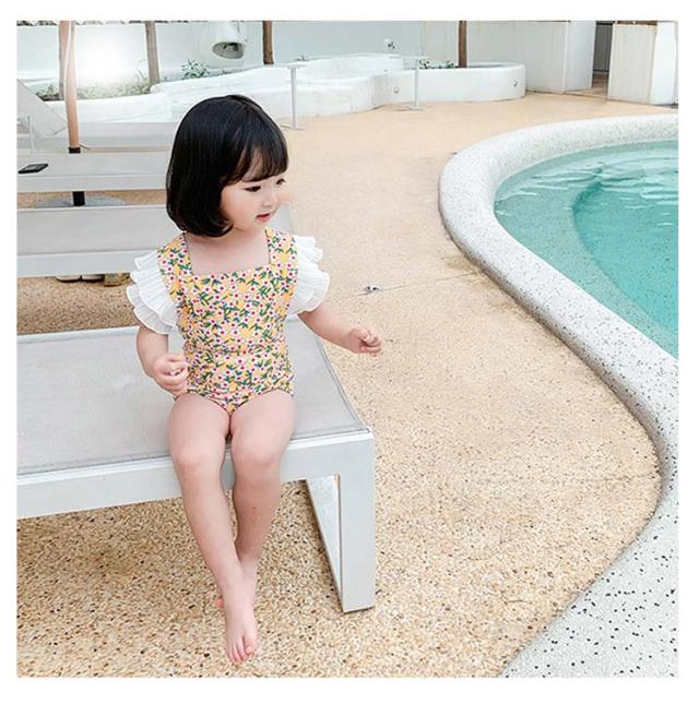 | おしゃれで可愛いワンピースタイプのベビー水着 オールインワンタイプなのでお腹をしっかりカバーできるので気にせず思いきり遊べちゃう | |