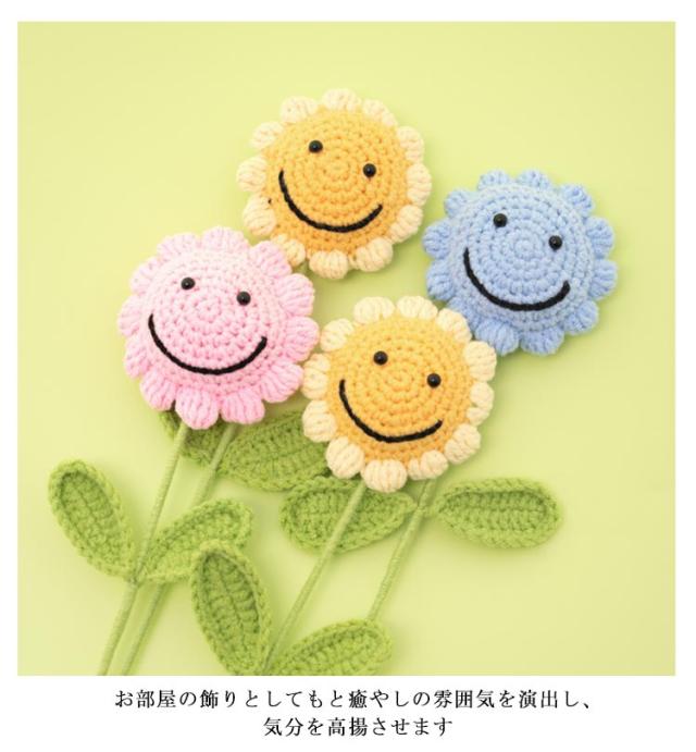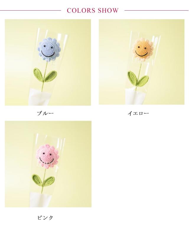 スマイルフラワー かぎ針編み 花 ひまわり ブーケ 花束 造花 5本 フラワーブーケ ニット編み 手編み ニットフラワー ニットブーケ スマイル かわいい 子供 卒園式 卒業式 卒部 離任 お祝い 入園式 入学式 誕生日 枯れない花 母の日 プレゼント ギフト クリスマス