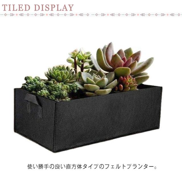 | 通気性 大型 プランター 使い勝手の良い直方体タイプのフェルトプランター。 不織布素材。通気性&透水性◎根腐れ防止に。 排水穴がなく虫の混入も防げます♪ 持ち手付き。軽量、持ち運びも楽ちん♪小さくなった鉢の植え替えに | |