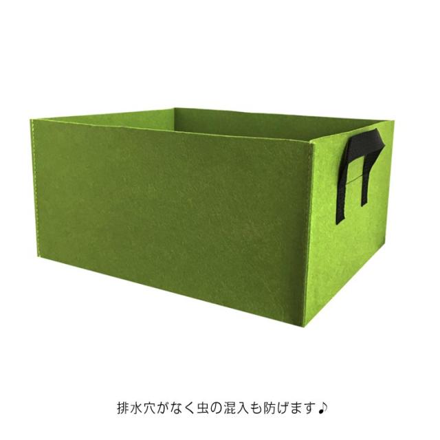 | 通気性 大型 プランター 使い勝手の良い直方体タイプのフェルトプランター。 不織布素材。通気性&透水性◎根腐れ防止に。 排水穴がなく虫の混入も防げます♪ 持ち手付き。軽量、持ち運びも楽ちん♪小さくなった鉢の植え替えに | |