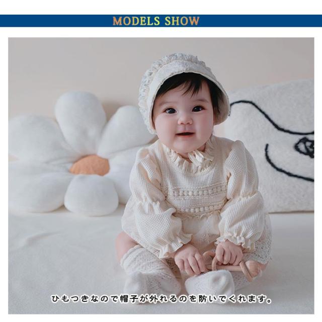 | おしゃれなベビー用ボンネット ひもつきなので帽子が外れるのを防いでくれます。 頭にかぶせてひもで結びだけ!キュートに! 通気性抜群、汗をかく暑い日も安心 軽い生地感、頭を優しく包み込んでいます。 大き目のつばがしっかり日除け防止をしてくれます。 | |