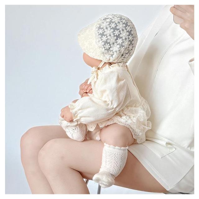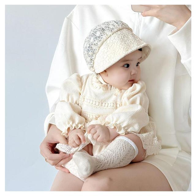 ベビー帽子 2柄選べる 春夏 夏用 キャップ ボンネット レース 女の子 日よけ 日除け つば広 赤ちゃん ハット 日よけ 日除け ベビー レース ホワイト 無地