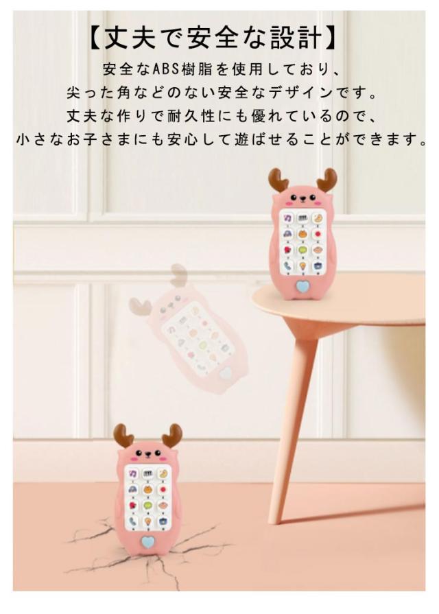 | 【赤ちゃんを飽きさせない多機能スマートフォンおもちゃ】さまざまな種類の電子音やミュージックで、はじめてテクノロジーにふれる赤ちゃんは楽しみながら知力をのばすことができます。スマホやリモコンに興味を持ち始めたお子様にぴったり!感覚的な遊びと操作的な遊びができます。 【プレゼントにも最適】 出産祝いやお誕生日、初節句、クリスマス、入園のお祝いなどの贈り物にもぴったりです。ご友人やお知り合いなど大切な方へのお祝い事のプレゼントとしても大変喜ばれますよ♪なるべく早く英語に触れさせたい方にもおすすめです。 【0歳からの知育玩具】 はじめてのスマホは、0歳から遊べるかわいいスマホの知育玩具です。小さなお子さまの好奇心を刺激するカラフルなデザインで、お子さまの「目と手の協調性」「想像力」「聴覚の感性」などの発達を促す仕掛けがいっぱい詰まっています。ハイハイ期からお子さまの成長をサポートしてくれます。 【寝かしつけサポート】自然や単調な音が心地よく睡眠用の曲もあり、寝かしつけをサポートしてくれます。二段階に音量調節が可能で、赤ちゃんの耳にも優しい65デシベル未満の音量です。 【丈夫で安全な設計】 安全なABS樹脂を使用しており、尖った角などのない安全なデザインです。丈夫な作りで耐久性にも優れているので、小さなお子さまにも安心して遊ばせることができます。 | |