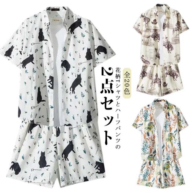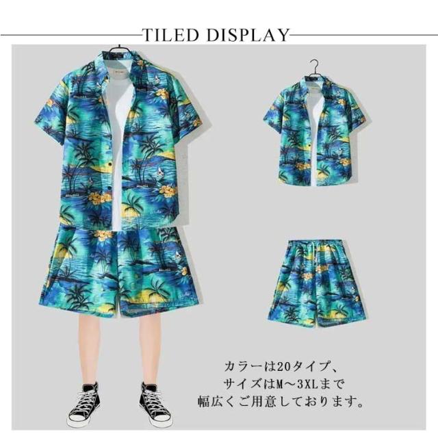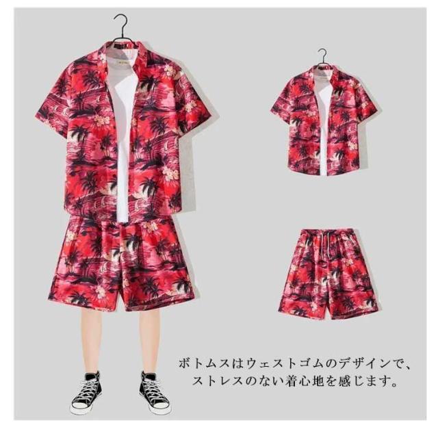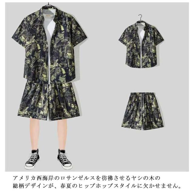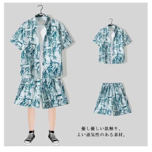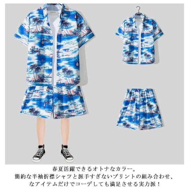上下セット 半袖 メンズ 夏 接触冷感 総柄 セットアップ 上下 花柄 涼しい アロハシャツ 短パンツ 夏服 大きいサイズ 旅行 ビーチ 海 ジャージ上下 ハワイアン 柄シャツ カジュアル 部屋着 ショートパンツ おしゃれ 爽快 冷感 軽い 2点セット 父の日 プレゼント 送料無料