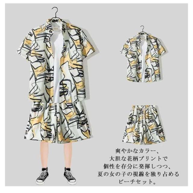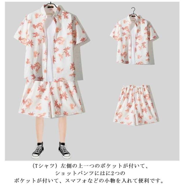 | 花柄Tシャツとハーフパンツの2点セット。 カラーは20タイプ、サイズはM〜3XLまで幅広くご用意しております。 爽やかなカラー、大胆な花柄プリントで個性を存分に発揮しつつ、夏の女の子の視線を独り占めるビーチセット。 優し優しい肌触り、よい通気性のある素材。 ボトムスはウェストゴムのデザインで、ストレスのない着心地を感じます。(Tシャツ)左側の上一つのポケットが付いて、ショットパンツにはに2つのポケットが付いて、スマフォなどの小物を入れて便利です。 アメリカ西海岸のロサンゼルスを彷彿させるヤシの木の総柄デザインが、春夏のヒップホップスタイルに欠かせません。 春夏活躍できるオトナなカラー。簡約な半袖折襟シャツと派手すぎないプリントの組み合わせ、なアイテムだけでコーデしても満足させる実力派! | |