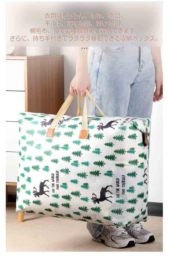 | 出し入れ便利・防水防塵の大容量布団収納袋。 35L 48L 85L 120L 布団や毛布、衣服など、余裕を持って収納できるから、散らかるクローゼットや押入れもすっきりと整理することができる布団収納ケース。 圧縮せずに収納できるので、次のシーズンまで、ふわふわの状態を保ちます。 衣類はもちろん、毛布、布団、キルト、羽毛布団、掛け布団、綿毛布、全ての種類簡単に収納できます。さらに、持ち手付きでラクラク移動できる収納ボックス。 厚くて丈夫な高品質不織布を採用し、防水コーティングが施されており、防水防湿機能が優れているため、湿気や水から中身をしっかりと守ります。 | |