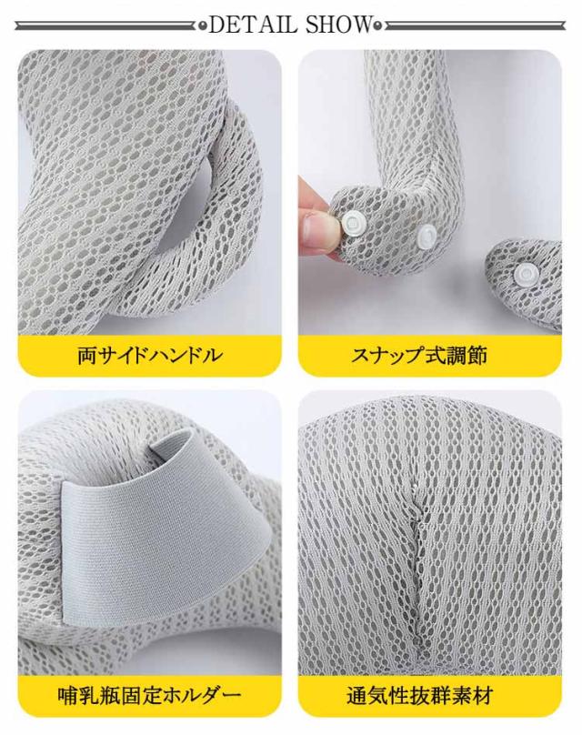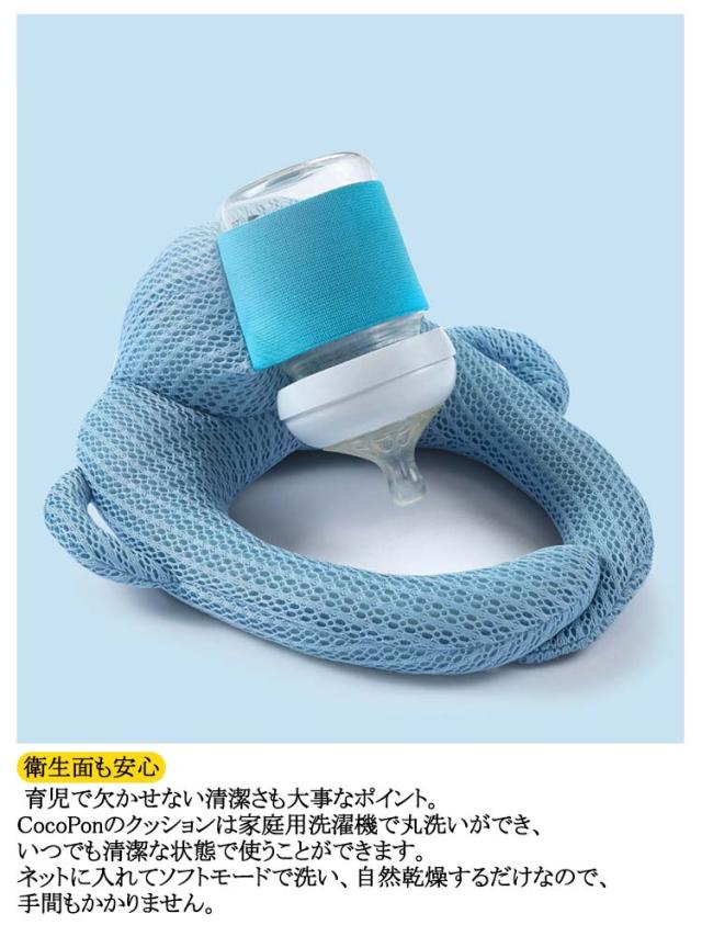 | 夏快適なメッシュ素材! 赤ちゃんが飲みやすい姿勢をキープしながら、ママ・パパの負担を軽減する哺乳瓶ホルダー。 【ハンズフリーで授乳がもっとラクに!】赤ちゃんとの授乳時間をより快適に、そしてママの体への負担を軽減するためにデザインされています。哺乳瓶ホルダーが付いているので、ママやパパが手を使わずに赤ちゃんにミルクをあげることができます。 【多機能で長期間使える】 長に合わせてサイズ調整が可能です。スナップボタンで簡単に調整できるため、赤ちゃんの体型にぴったりフィットし、成長に合わせて長く使用することができます。 【赤ちゃんの肌に優しい素材】 ベルベットとポリエステルの柔らかな生地を採用しており、敏感な赤ちゃんの肌にも安心です。柔らかな触り心地が赤ちゃんを包み込み、快適な授乳時間をサポートします。 【衛生面も安心】 育児で欠かせない清潔さも大事なポイント。CocoPonのクッションは家庭用洗濯機で丸洗いができ、いつでも清潔な状態で使うことができます。ネットに入れてソフトモードで洗い、自然乾燥するだけなので、手間もかかりません。 【外出先でも使いやすい】 コンパクトに収納でき、持ち運びも便利です。 | |