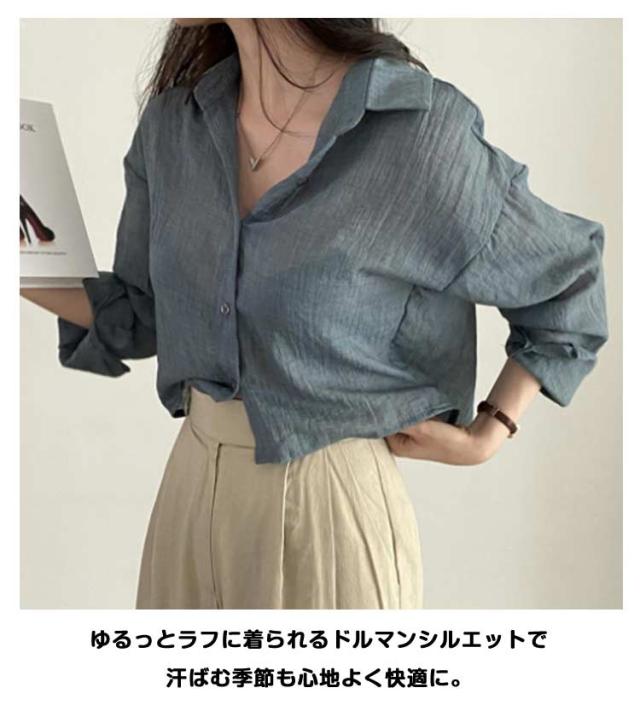 長袖シャツ レディース 長袖 楊柳ダブルガーゼ ブラウス トップス シャツ チュニック 長袖 無地 羽織 ライトアウター ドルマン ゆったり 大きいサイズ 体型カバー 黒 春 夏 カジュアル ナチュラル ゆったり