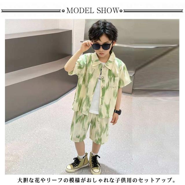上下セット ハーフパンツ アロハシャツ 子供服 旅行 子供用 ギフト 子ども キッズ ショートパンツ 女の子 男の子 リゾート 総柄 セットアップ ベビー服 春夏 ハーフパンツ 半袖シャツ ビーチ 2点セット 海 80 90 100 110 120 130 140 150 160 ジュニア 送料無料