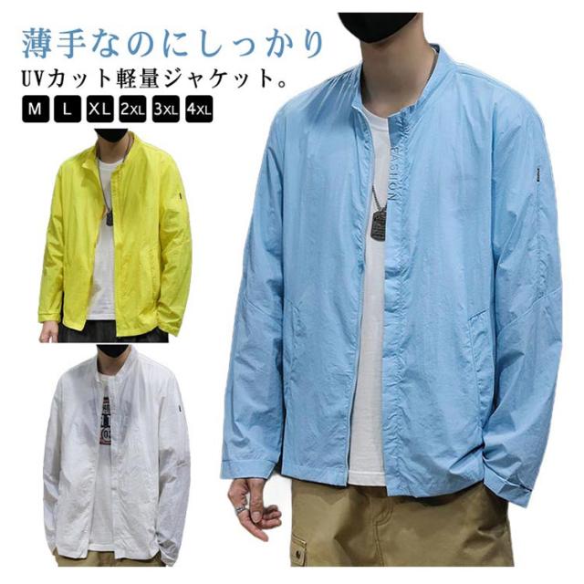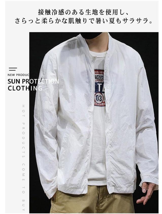 ラッシュパーカー 吸汗 長袖 接触冷感 薄手 フードなし カジュアル メンズ 夏用 コート UVカット 涼しい ジャケット 立ち襟 速乾 紫外線対策 日焼け防止 冷房対策 ジャンパー 無地 軽量 通気性 ブルゾン 接触冷感 大きいサイズ アウトドア ひんやり 送料無料