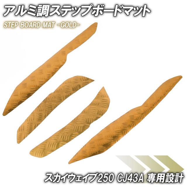 アルミ調 ステップマット スズキ スカイウェイブ250 リミテッド/タイプS/SS CJ43A ゴールド メッキ バイク ゴムマット ステップボード 交換 カスタム パーツ