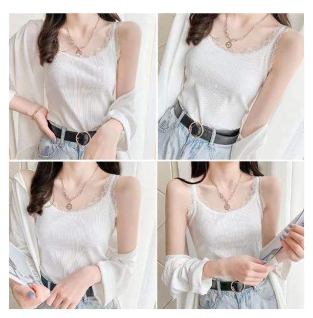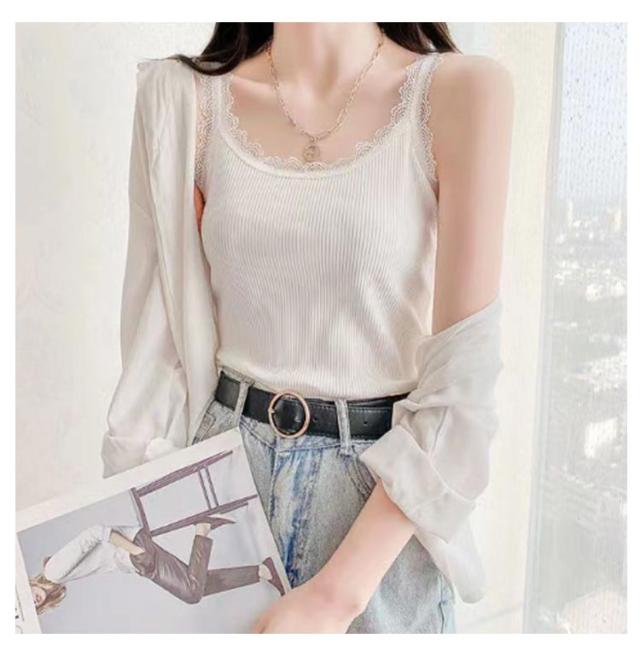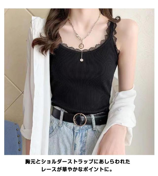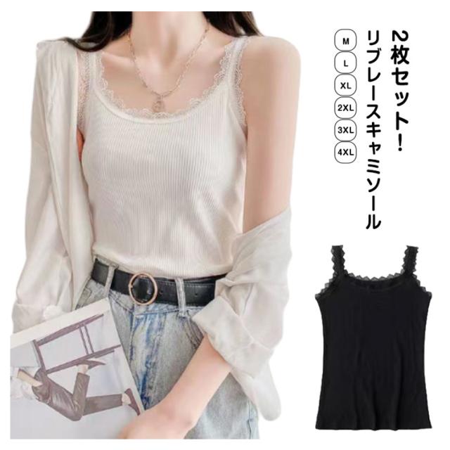 2枚セット キャミソール リブ レース インナー レディース 綿 トップス 肌着 下着 レイヤード チラ見せ 無地 重ね着 シンプル 薄い タンクトップ 女性 大きいサイズ オールシーズン 送料無料