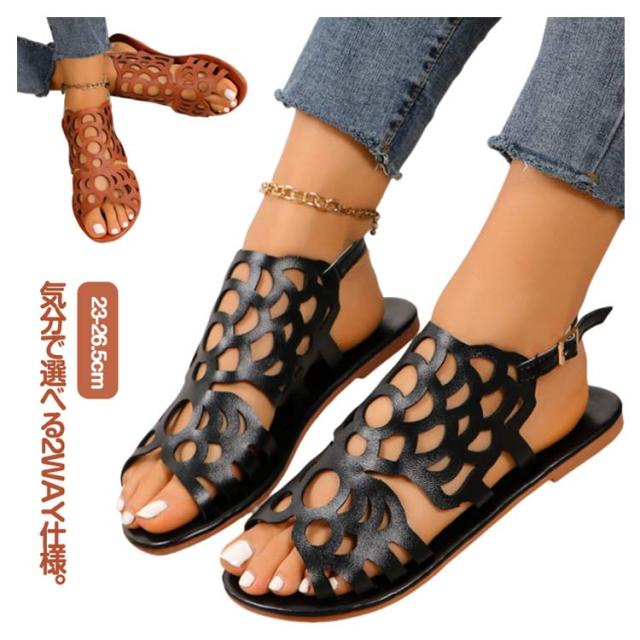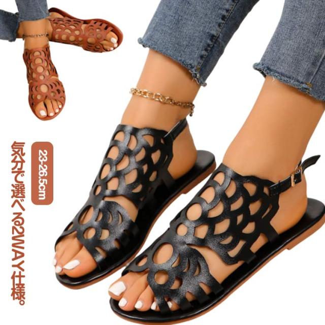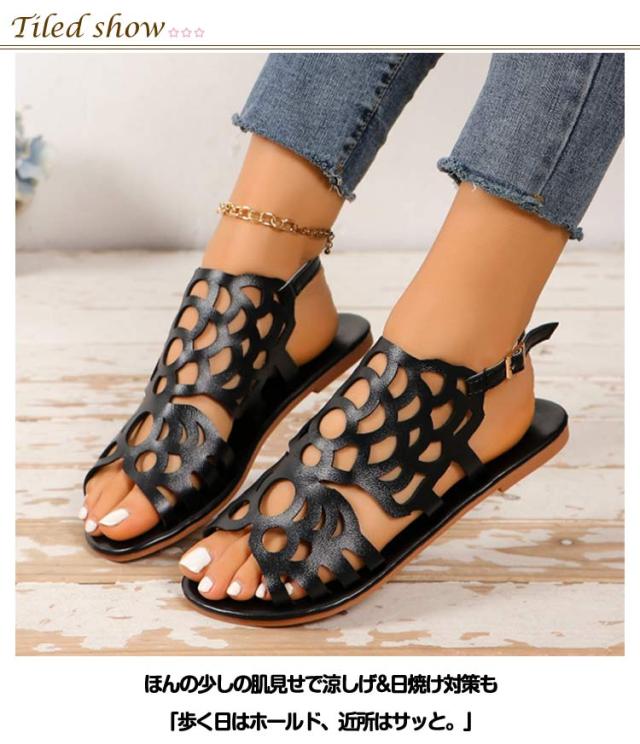 サンダル レディース ローヒール ぺたんこ かかとあり 外反母趾 幅広 甲高 歩きやすい 痛くない 柔らかい 脱げない 疲れない 軽い 走れる 滑らない 編み込み メッシュ 旅行 持ち運び 大きいサイズ 黒 ブラウン ブラック おしゃれ かわいい