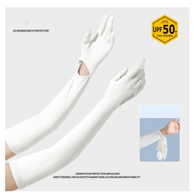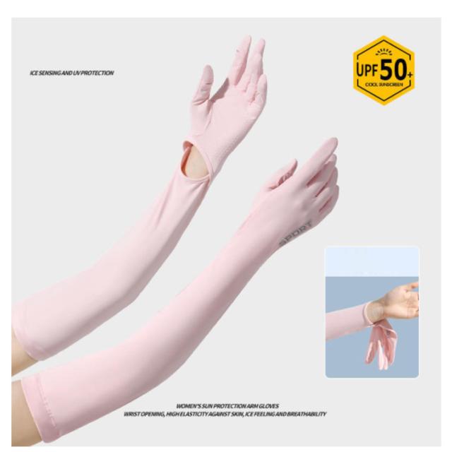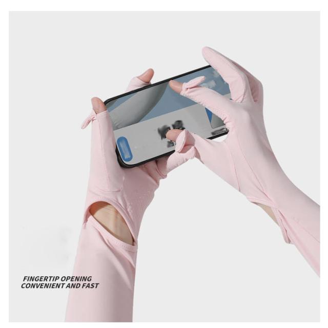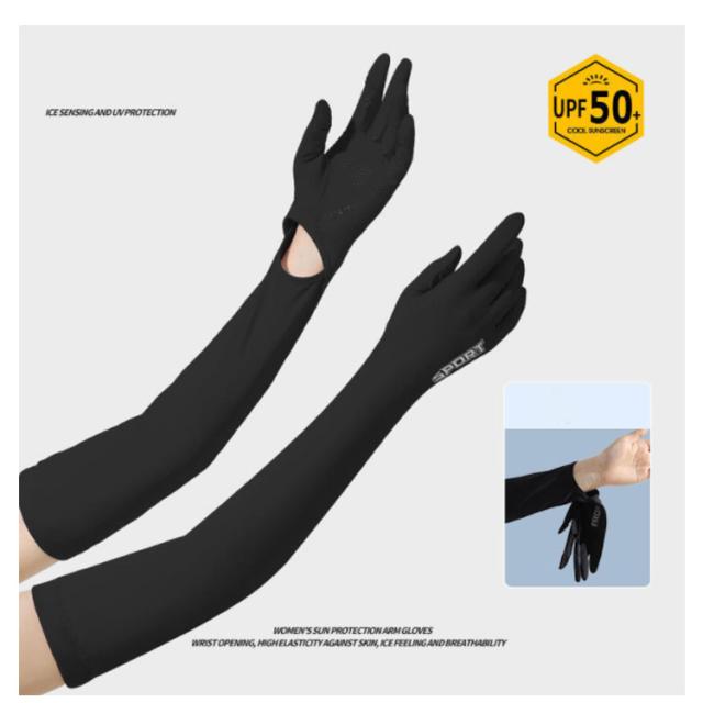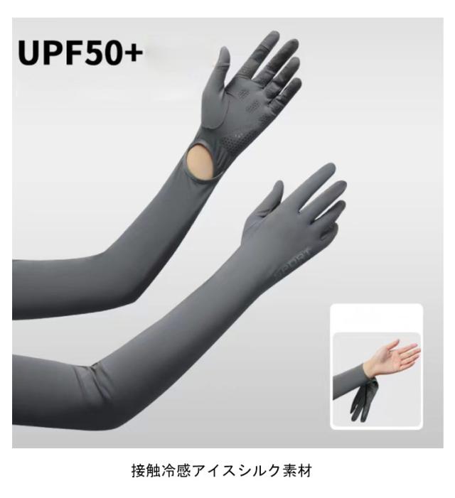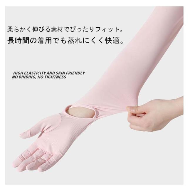 UV アームカバー ロング丈 夏用 アイスシルク アームカバー 手袋 一体型 手首開口 指先まで 接触冷感 滑り止め スマホ操作 日焼け止め UVカット 伸縮性 通気性 ドライブ 自転車 通勤 通学