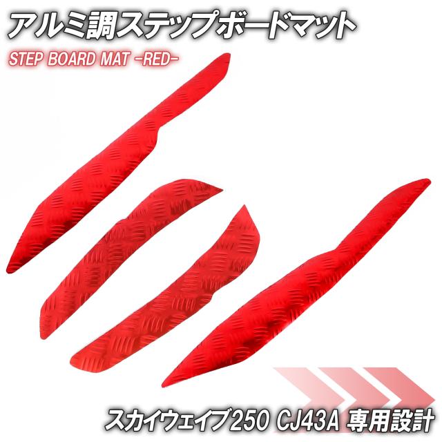 アルミ調 ステップマット スズキ スカイウェイブ250 リミテッド/タイプS/SS CJ43A レッド メッキ バイク ゴムマット ステップボード 交換 カスタム パーツ 部品