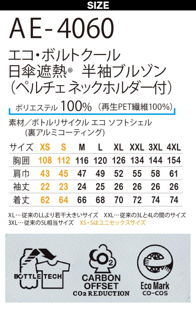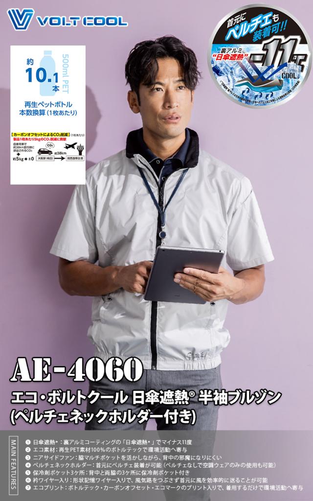 2025年新商品 空調風神服 エコ・ボルトクール 日傘遮熱半袖ブルゾン AE-4060 GP-854 冷却ペルチェセット 電動ファン用ウェア※バッテリー・ファン別売り