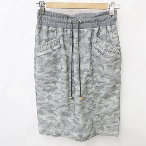 【中古】グランターブル GRAND TABLE スカート タイトスカート 膝丈 プリント 迷彩柄 別布 ジャージ 総ゴム グレー M