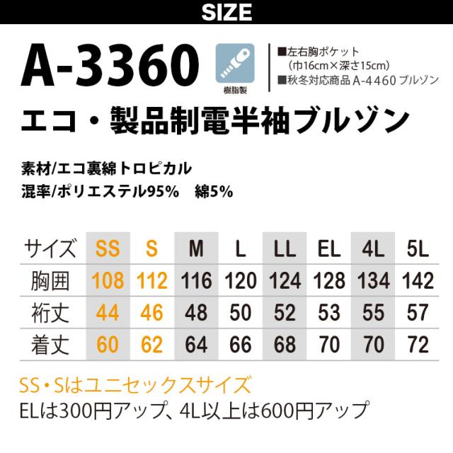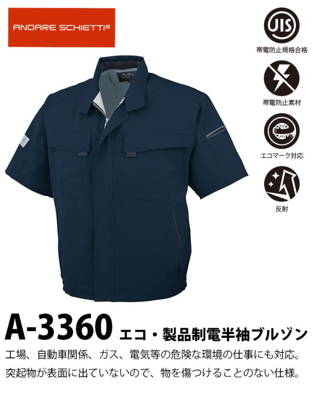 コーコス エコ・製品制電半袖ブルゾン A-3360 5Lまで COOLISH 従来比通気量10倍 体内温度3度ダウン 表面突起付属のない安心仕様 危険な環境での仕事にも対応