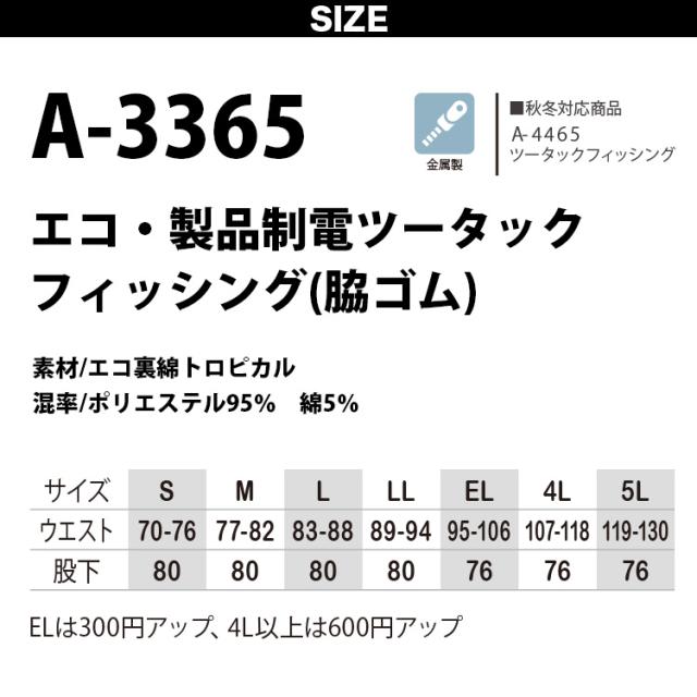 コーコス エコ・製品制電ツータックフィッシング(脇ゴム)A-3365