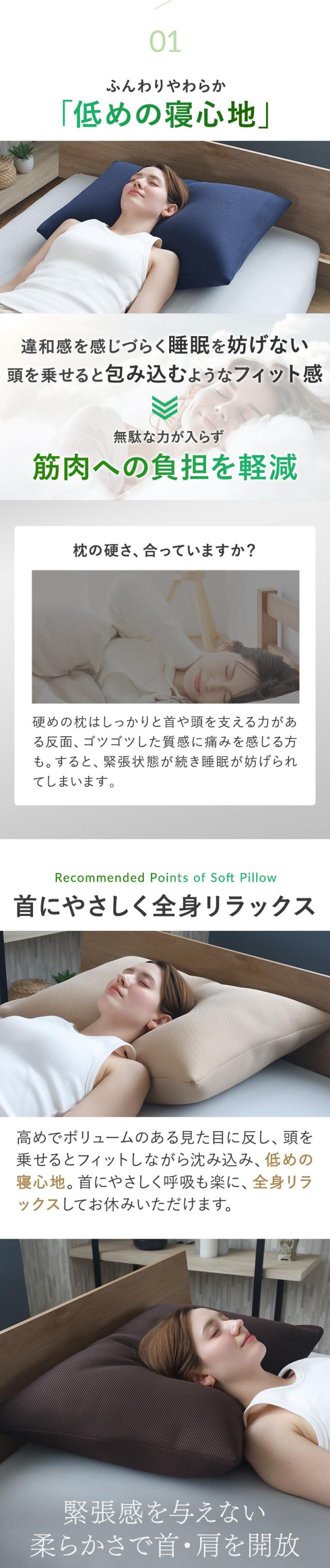 ふんわりやわらか低めの寝心地で睡眠を妨げない枕
