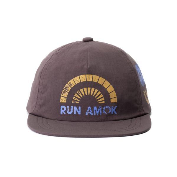 RUN AMOK定番の浅めの被り心地な5パネルキャップ。