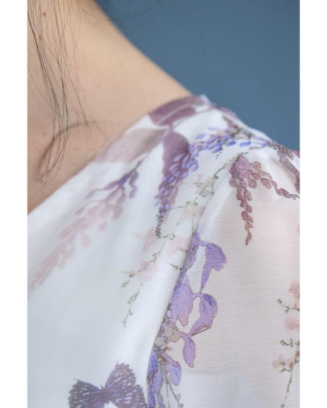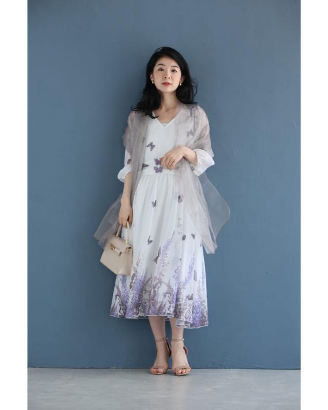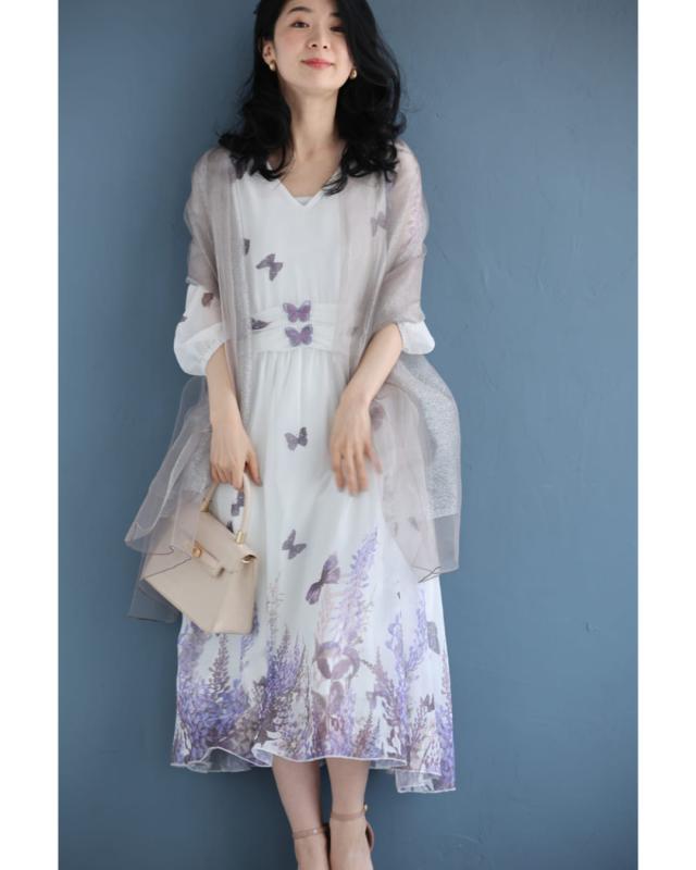 w61220ps 新作 新着 再入荷 CAWAII FRENCHPAVE フレンチパヴェ エレガント ベーシック カジュアル 可愛い かわいい カワイイ おしゃれ オシャレ お洒落 個性 個性的 定番 ベーシック 大人かわいい 大人可愛い 上品 女性らしい デザイン スタンダード ナチュラル きれいめ キレイめ シンプル フェミニン レディース レディースファッション 大人 ママ ミセス 30代 40代 50代 60代 花舞い蝶々 ふんわり ミディアム ワンピース 半端袖7分袖 八分袖 Vネック S M 小さめ 小さいサイズ 低身長 痩せ ほっそり 小柄 細身 薄手 涼感性 涼しい ずずしい 春 夏 春服 春物 夏 夏服 夏物 軽やか 軽量 爽やか 清楚感 ホワイト 白 白色 普段着 日常使い デート おでかけ 旅行 休日 女子会 パーティー お呼ばれ 柄 プリント シフォン