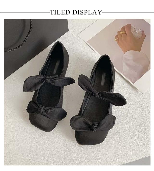 フラットシューズ メリージェーン リボン 韓国 スクエアトゥ バレエ サテン バレエシューズ バレエシューズ 黒 ぺたんこ 可愛い 柔らかい フラットパンプス フラット シューズ レディース 痛くない ダブルリボン フレンチガーリー ローヒール フラットシューズ 滑り止め