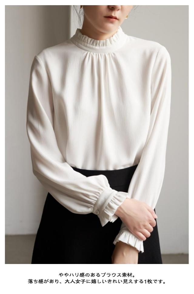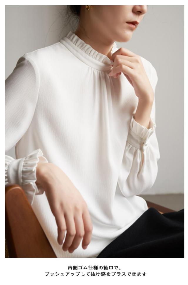 レディース ブラウス スーツブラウス スタンドカラー フリル襟 スーツインナー レディースブラウス シャツブラウス 七五三 ママ 卒業式 入学式 長袖 インナー 無地 立ち襟 お洒落 フォーマル シワになりにくい 長袖ブラウス 通勤 OL 白