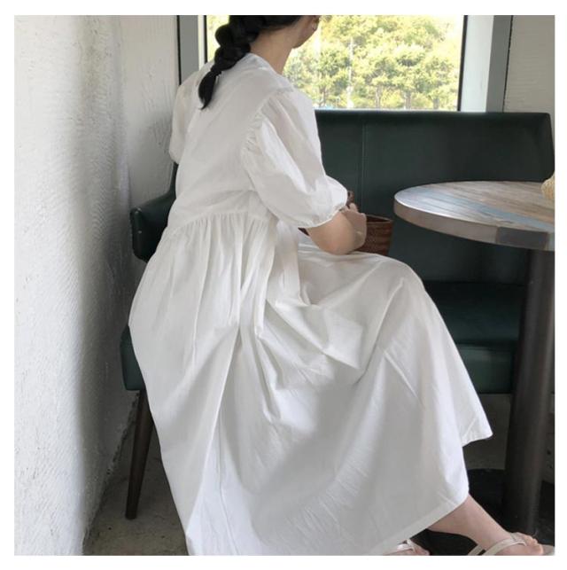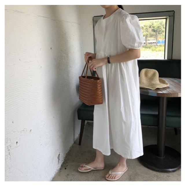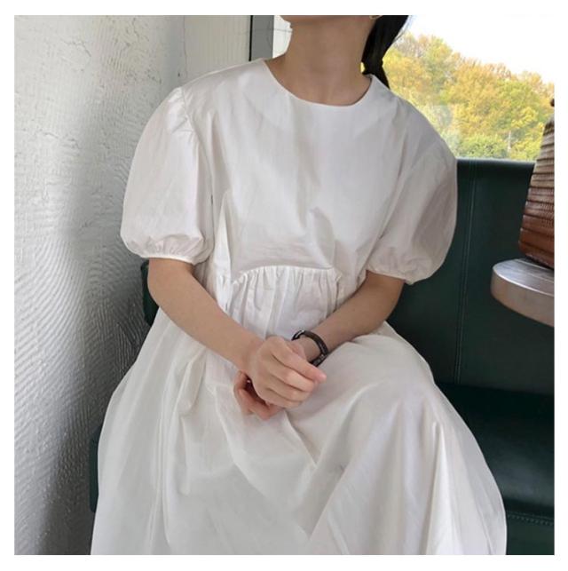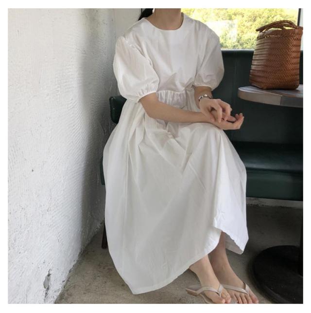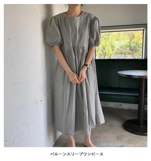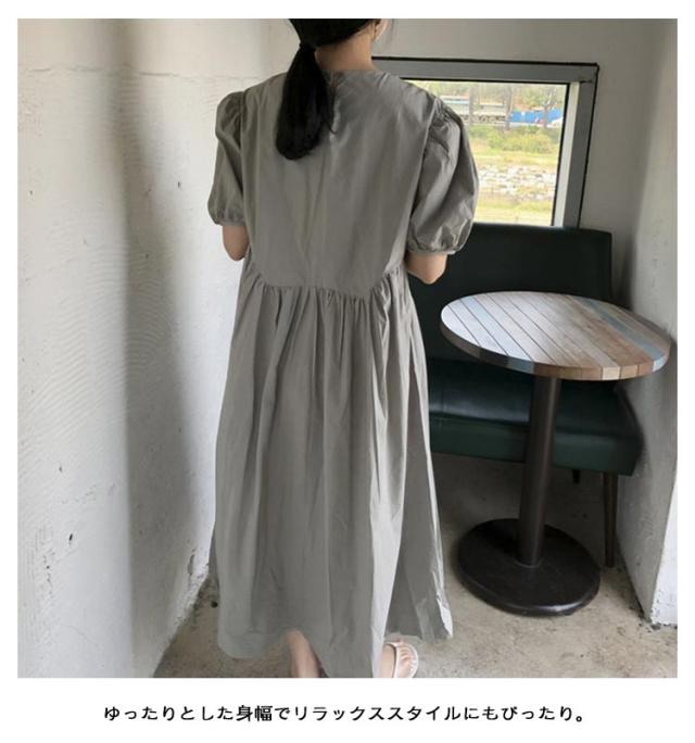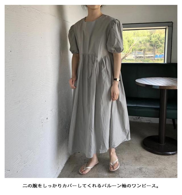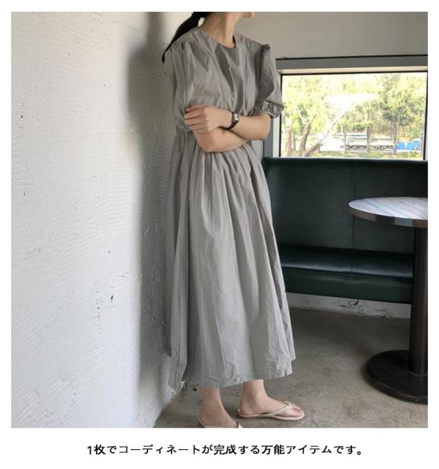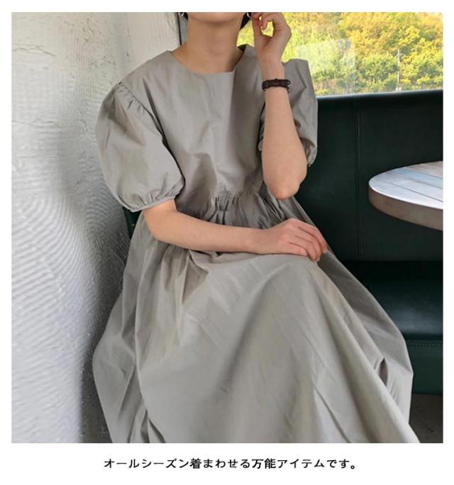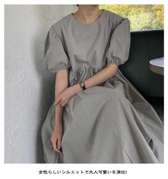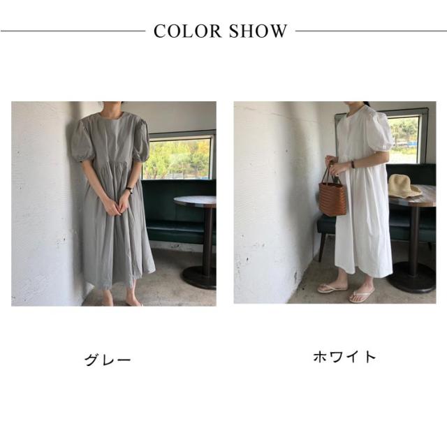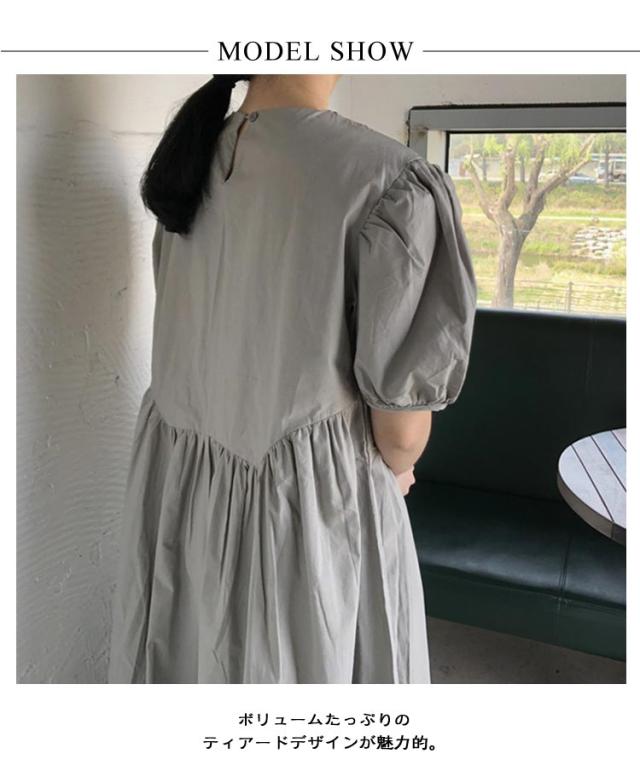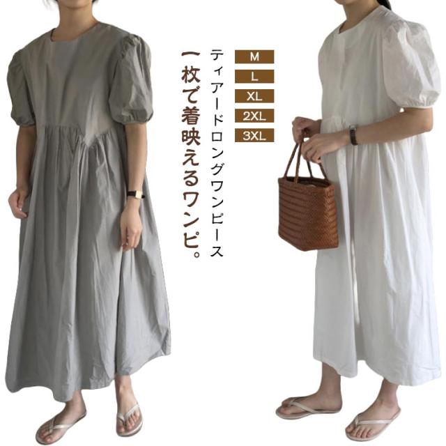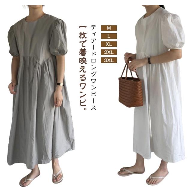 フレア ワンピース 無地 Aライン 半袖 ロングワンピース マキシワンピース レディース リラックス ロング ティアード ボリューム袖 ゆったり 体型カバー カジュアル ワンピース ティアードワンピース 春 夏
