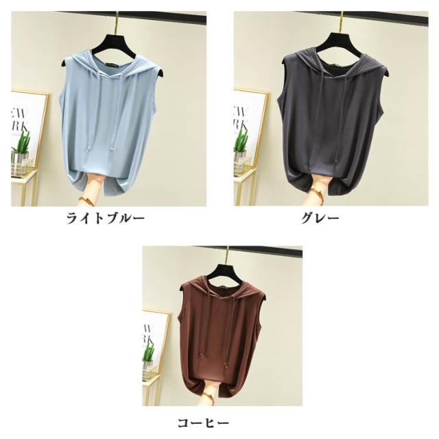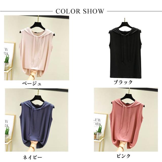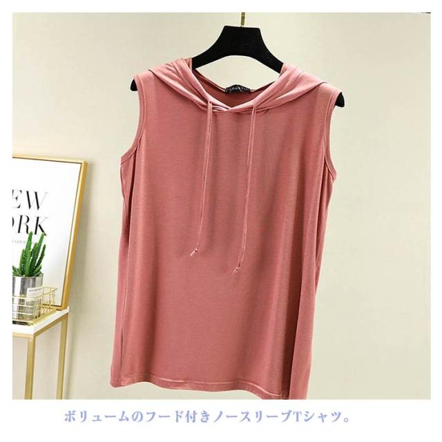 ノースリーブ tシャツ フード付き ベスト フード付きtシャツ パーカー 薄手 カットソー 袖なし レディース ノースリーブ トレーナー スウェット トップス シンプル プルオーバーノースリーブtシャツ 無地 春夏 ゆったり 重ね着 レイヤード お洒落
