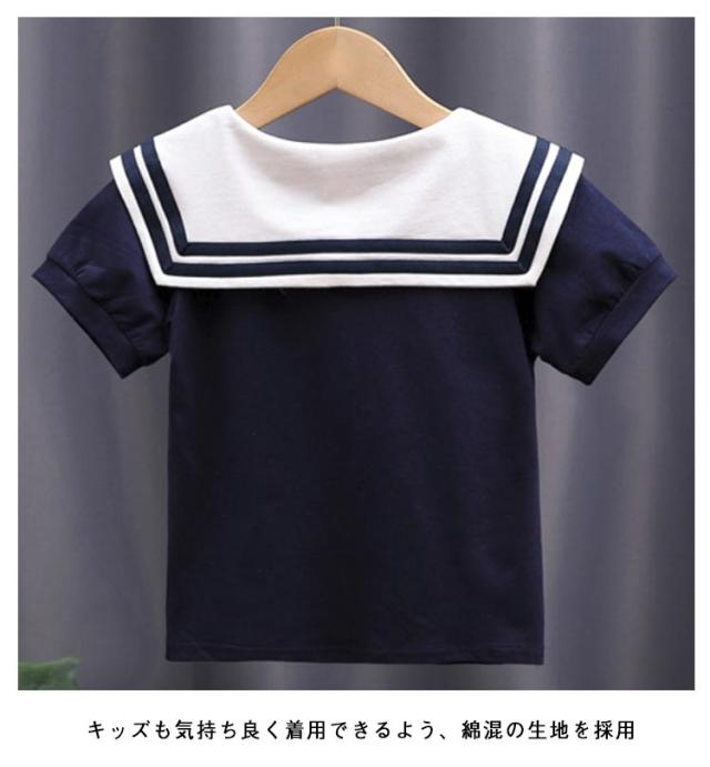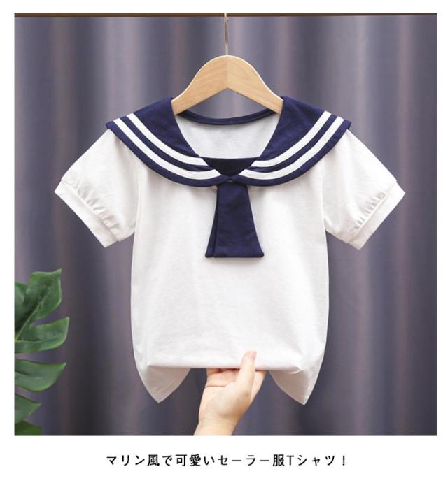かわいい 女の子 tシャツ キッズ セーラー襟 綿 お出かけ 130 可愛い トップス 無地 子供服 マリン こども 男の子 春 夏 セーラーカラー 子ども シンプル おしゃれ カジュアル 半袖 セーラー 110 120 140 セーラー襟 150 160cm