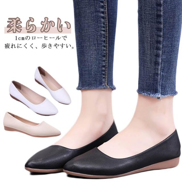 黒 ローヒール ぺたんこ 立ち仕事 ポインテッドトゥ レディース パンプス 合成皮革 就活 かかと 柔らかい ブラック 結婚式 通勤 パンプス 走れる シンプル 痛くない ポインテッドトゥ バレエパンプス ブラック ホワイト ベージュ 春夏 通勤 オフィス シンプル 入園式