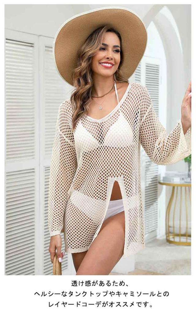 長袖Tシャツ メッシュ メッシュ 水陸両用 長袖 レディース フードなし ゆったり シアー シースルー Tシャツ 水着 トップス ラッシュガード 薄手 メッシュ 透け感 オーバーサイズ シアー 体系カバー スイムウェア ベージュ ブラック