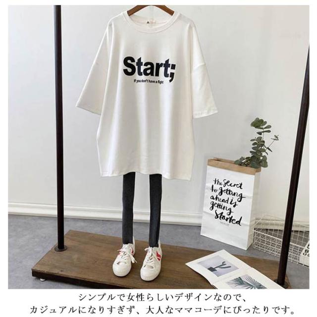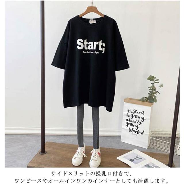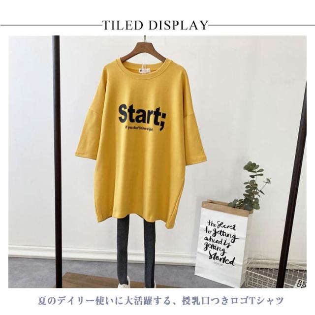 トップス Tシャツ 授乳服 インナー 出産準備 ロゴTシャツ マタニティ 前開き 半袖 チュニック 大きいサイズ おしゃれ カジュアル 妊婦服 ロング丈 産前 産後 ゆったり チュニック カットソー