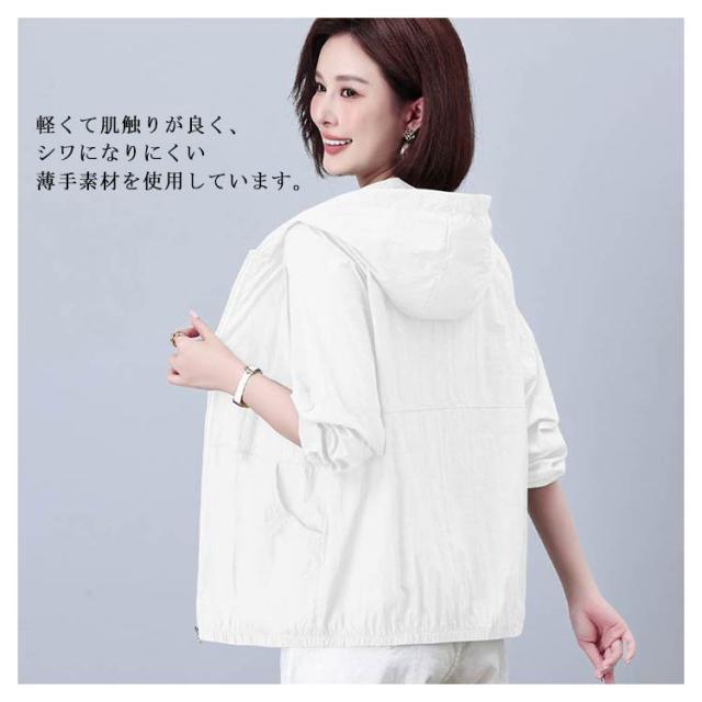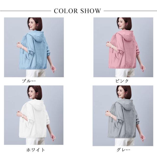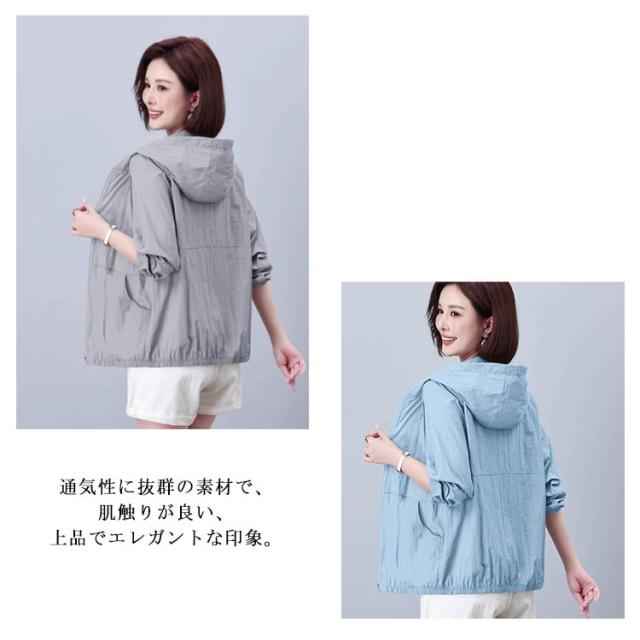 UVカット シアーブルゾン 長袖 シアー素材パーカー シアー シアーブルゾン レディース パーカー パーカー シアー フード付 シースルー 紫外線カット サマーパーカー シアートップス 冷房対策 ビーチ 40代 フェミニン ナイロンジャケット ショート