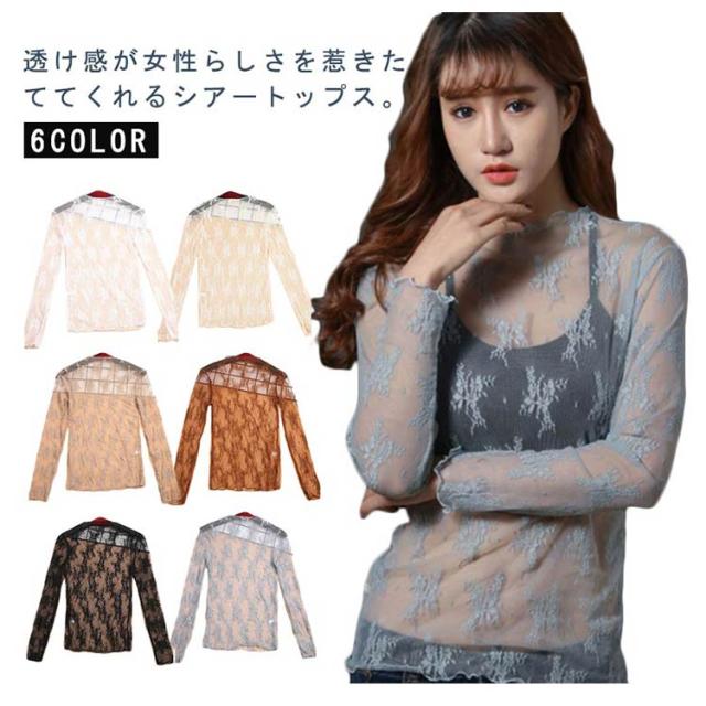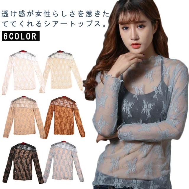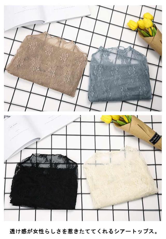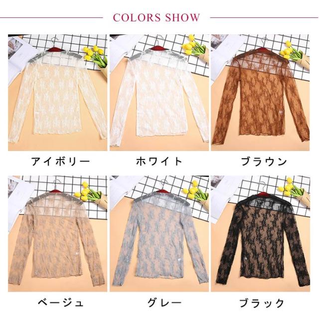 レイヤードトップス レーストップス 花柄 薄手 ブラウス ハイネック レディース プリント シアー フロッキー シアー ハイネック プルオーバー 透け感 モックネック レースインナー タートルネック 重ね着 インナー